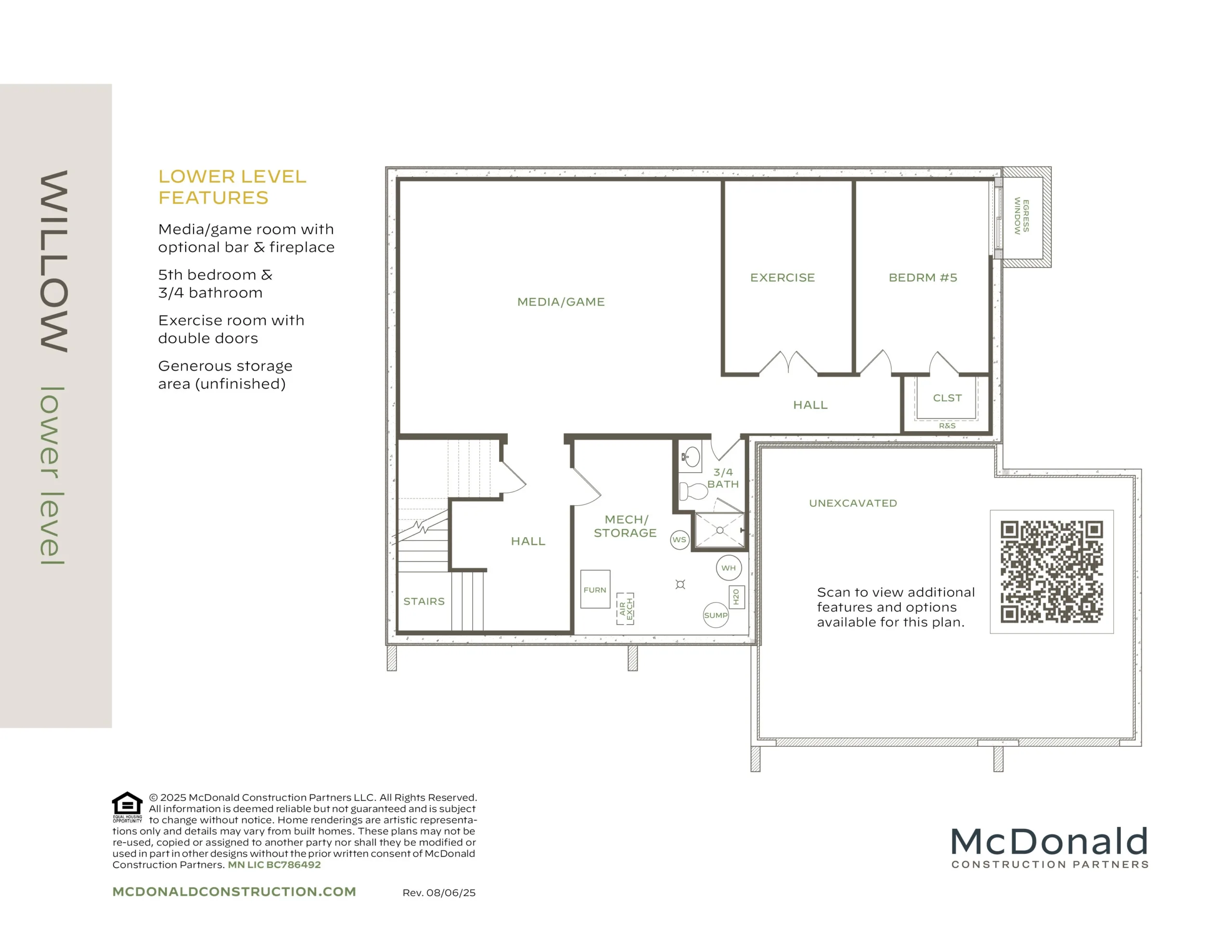 • Walkout lower level with 10’ ceilings, 5th bedroom and exercise room