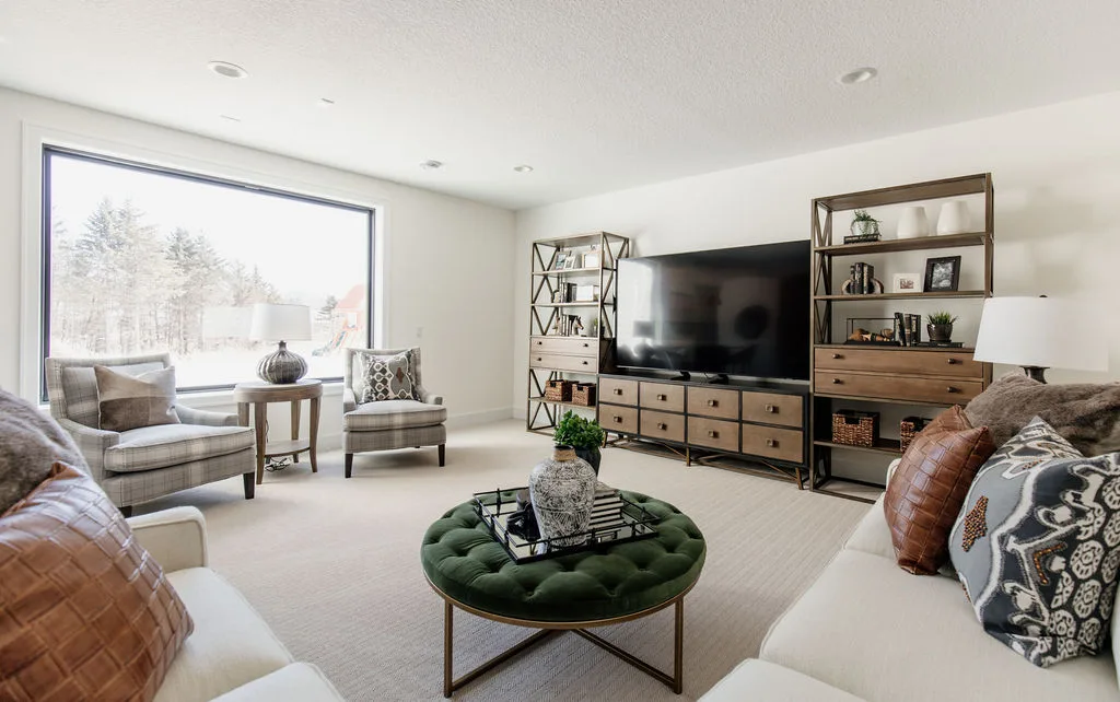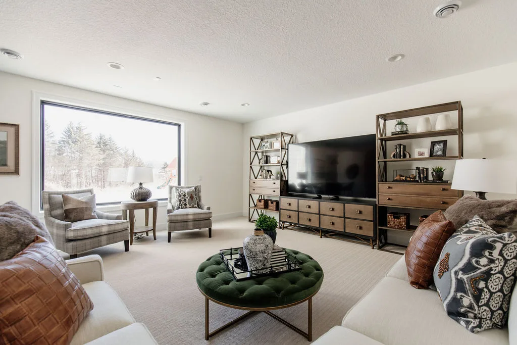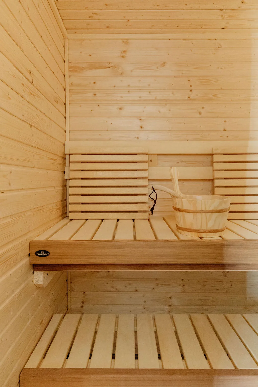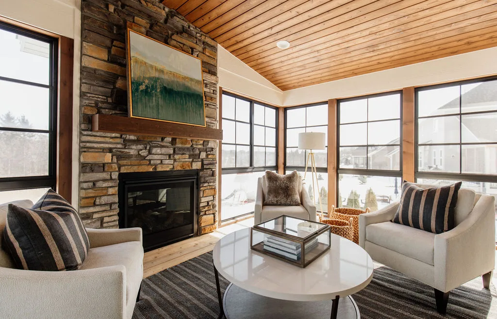 The finished lower level has an indoor gym, Finnsisu sauna, pub-style bar, and additional bedroom.