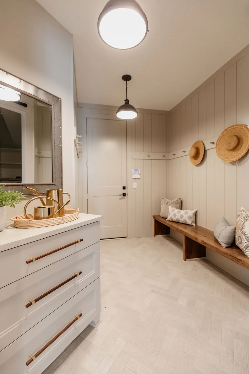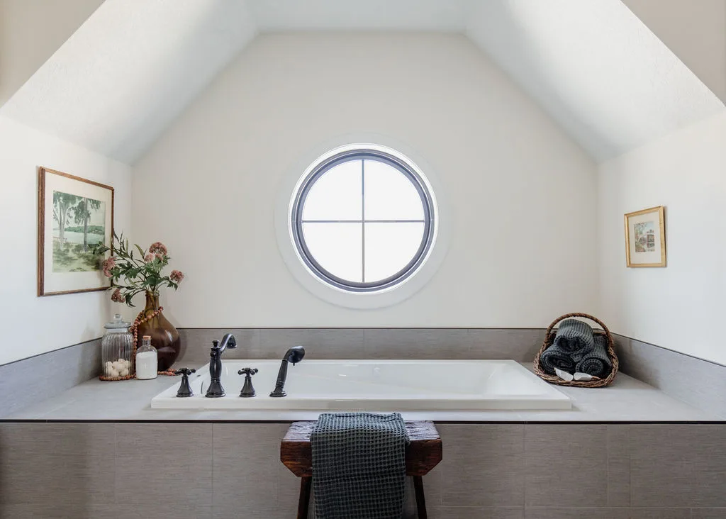 From the dramatic vaulted ceilings with reclaimed beams down to the tiniest vintage-inspired detail, this home truly delights with its layered natural style.