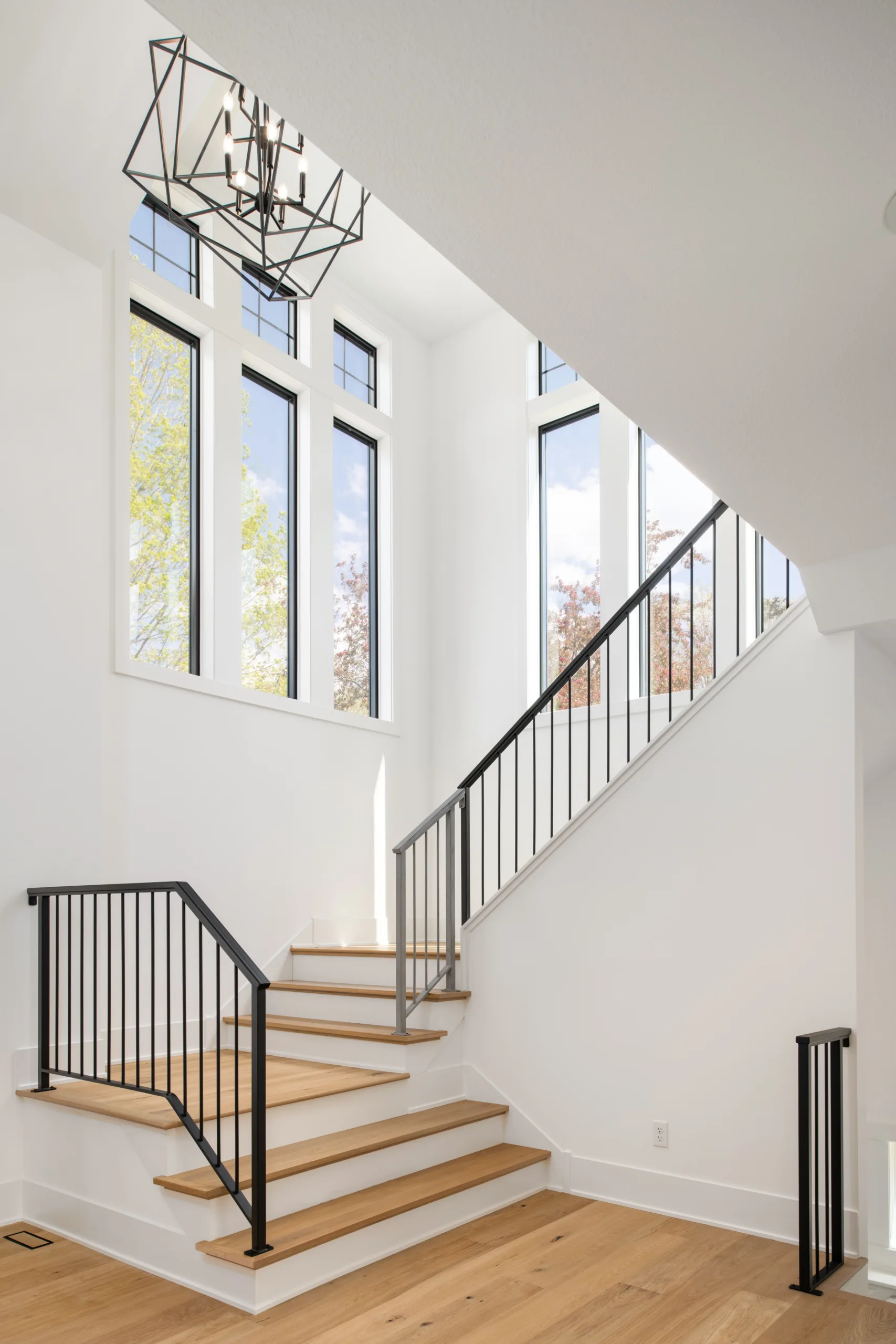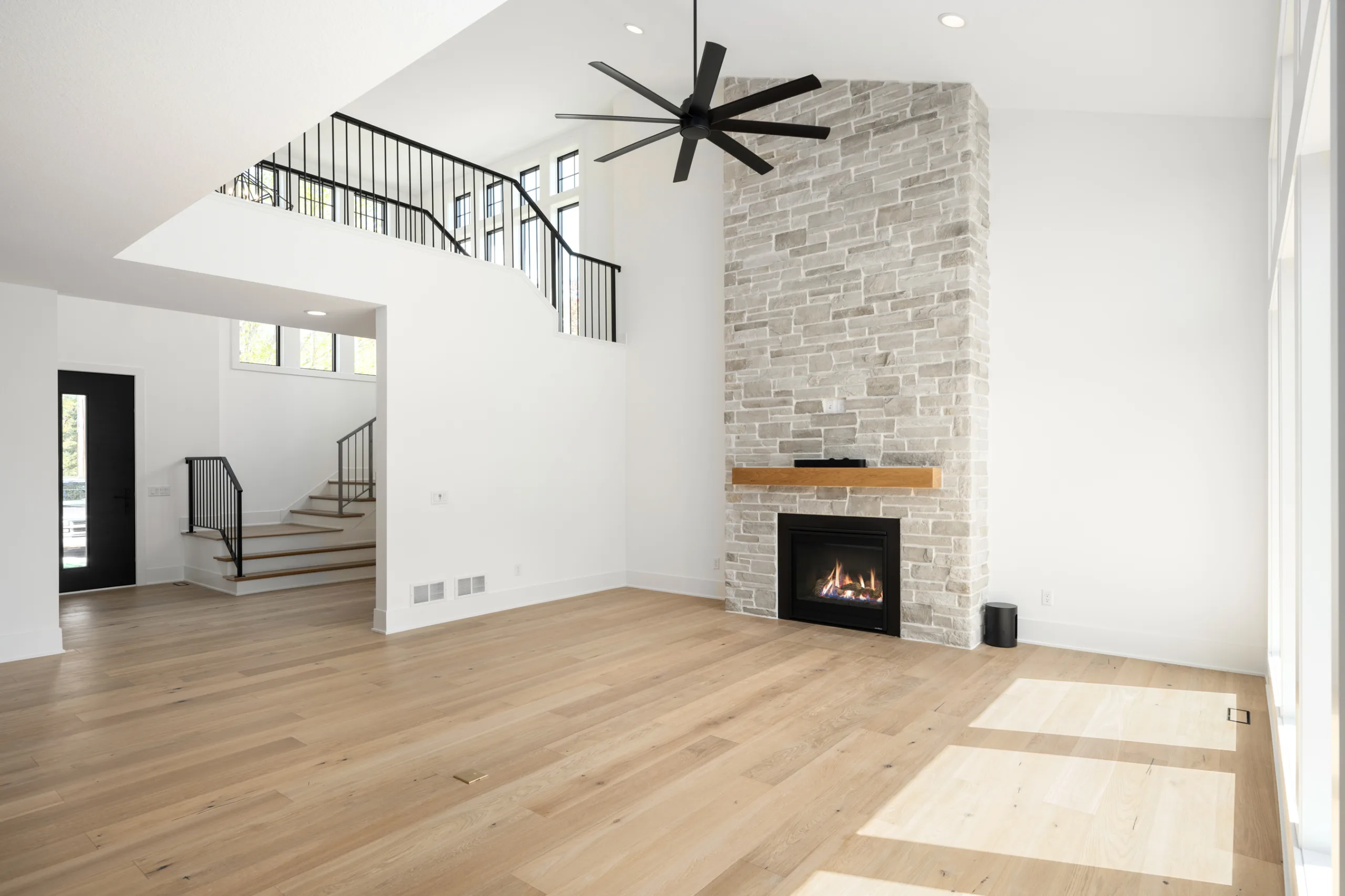 The moment you enter through the statement foyer, the Spruce Signature Plan captivates with its floating wood bench and a mesmerizing 2-story stair tower overlooking the great room.